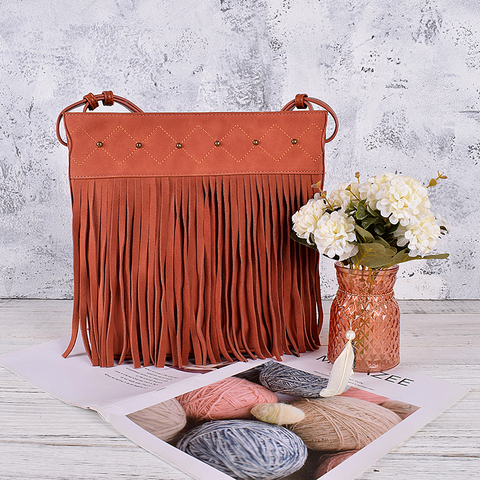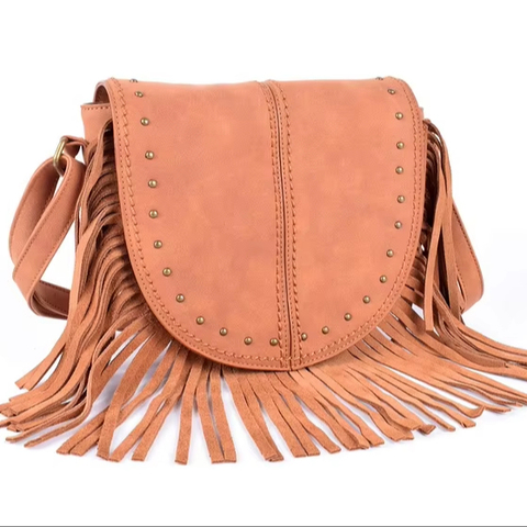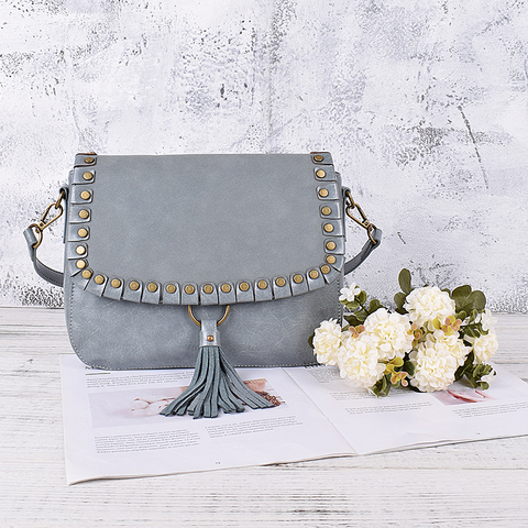 Bolso informal Vintage de cuero suave con borlas para mujer, un solo hombro, oblicuo, diseño de remache a la moda, cremallera impermeable de PU