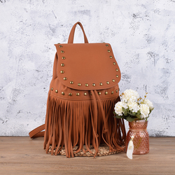 Mochila de ocio Preppy Vintage para mujer, mochila escolar portátil con borlas marrones, cierre de botón de dos asas, poliéster duradero para mujer